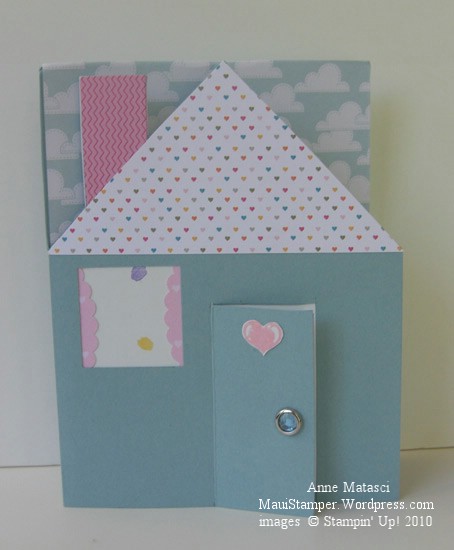 You would have to see her house to know how absolutely perfect this is. It’s such a creative card, with the roof cut out of the card front. The front door even opens – see?