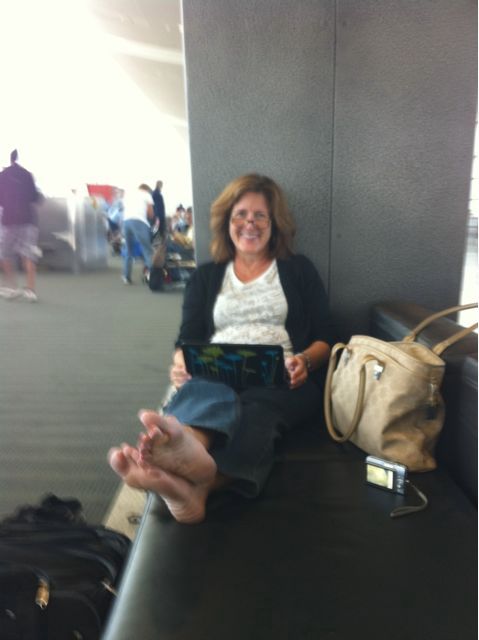 We were given breakfast vouchers with a promise of more towards lunch. We “shopped” in the airport – Seattle actually has a pretty nice retail environment – and then headed to the gate. We’ve been sitting here for a couple of hours trying to be productive.