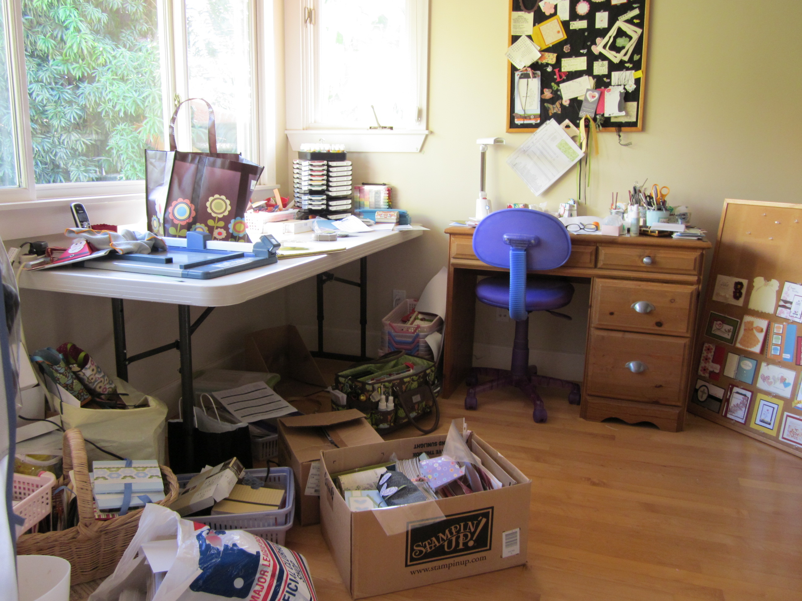 Now I’m dreaming. It’s kind of overwhelming, especially because we are in post-Christmas chaos. There are boxes of stuff that I don’t know what to do with – you know the sort – photos and mementos from travel and retired stamps/embellishments/papers that didn’t sell. We’re going to switch bedrooms and make the current stamp room into the guest room, so it promises to be exciting, chaotic and messy.