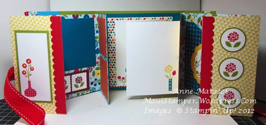 You can bring those stamps along for the next class – a flip scrapbook all ready for your photos and journaling: