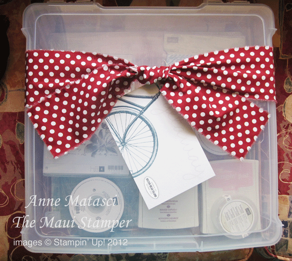 The Stampin’ Up! Hilton Head Incentive Trip was last month. Although I earned the trip, I didn’t attend as it conflicted with my God-daughter’s wedding in California. (It was a FABULOUS weekend and I absolutely made the right decision!!) Stampin’ Up! is generous, though, and I received a lovely cash bonus. I’d forgotten that I would also be getting the pillow gifts until an unexpected box arrived last week: