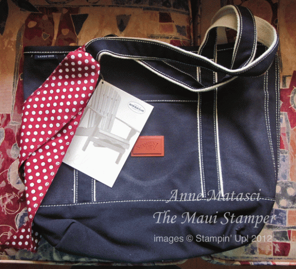 Yes, it’s a Lands’ End bag! It’s big, too – it will hold my 15″ laptop! Gorgeous, isn’t it? And that’s our Polka Dot fabric too – can’t wait to make a few more of these myself.
