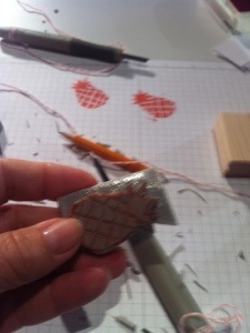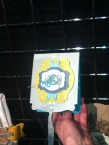 Sorry I can’t do better than this but the photos are of demos swapping, my new Undefined pineapple stamp, Shelli’s main stage projects (ignore the various hands & phones it was crowded!) and a fabulous Sock Monkey (Cheryl).