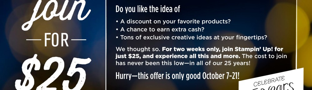 Don’t let this be one of those “What if I had only…” situations. Join the Stampin’ Up! family – for just $25.