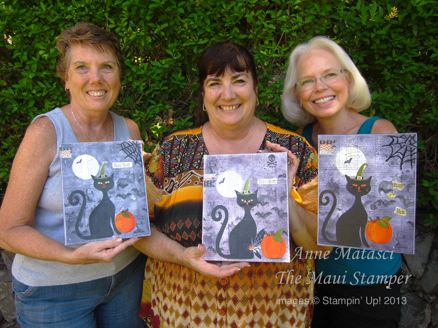 Sue, Robbie and Peggy with their creations – Nancy had to head out early and we missed her. Fun project – thanks for joining us stamper!