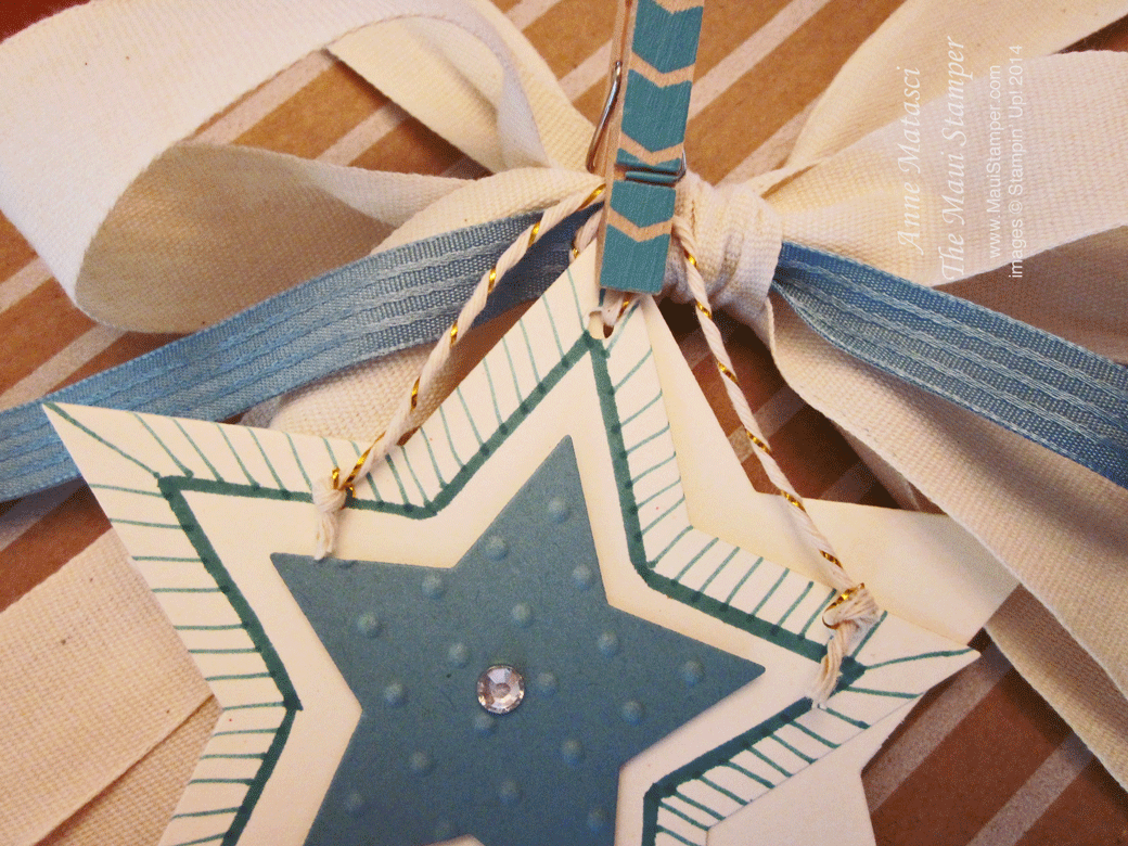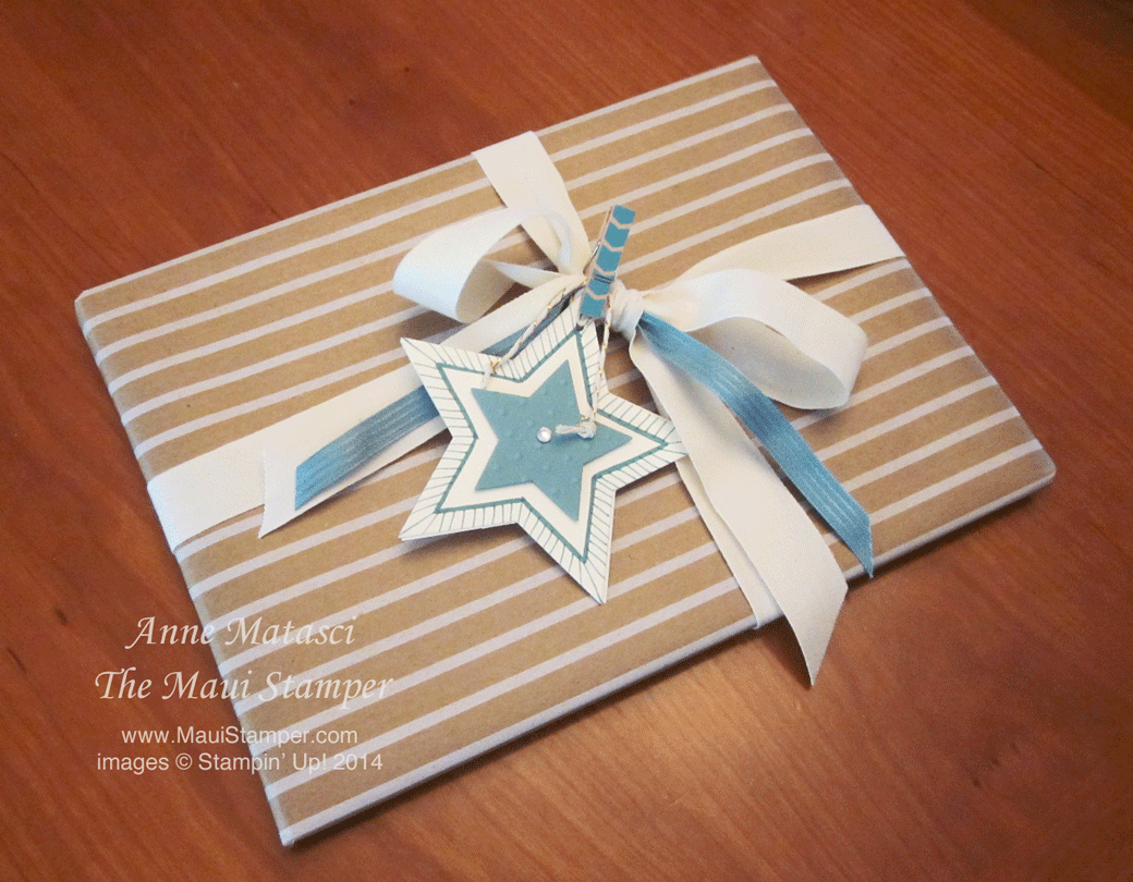 Star Framelits and Lost Lagoon paper and embellishments create a package that works for the holidays or even a December birthday.