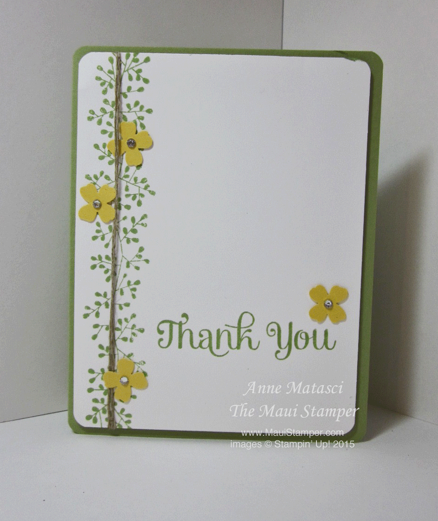 Maui Stamper Bordering Blooms ThanksIt’s a very simple design – these were all Stampin’ Newbies – but they had a good time.  I loved the end result, as every card was a little (or a lot!) different!