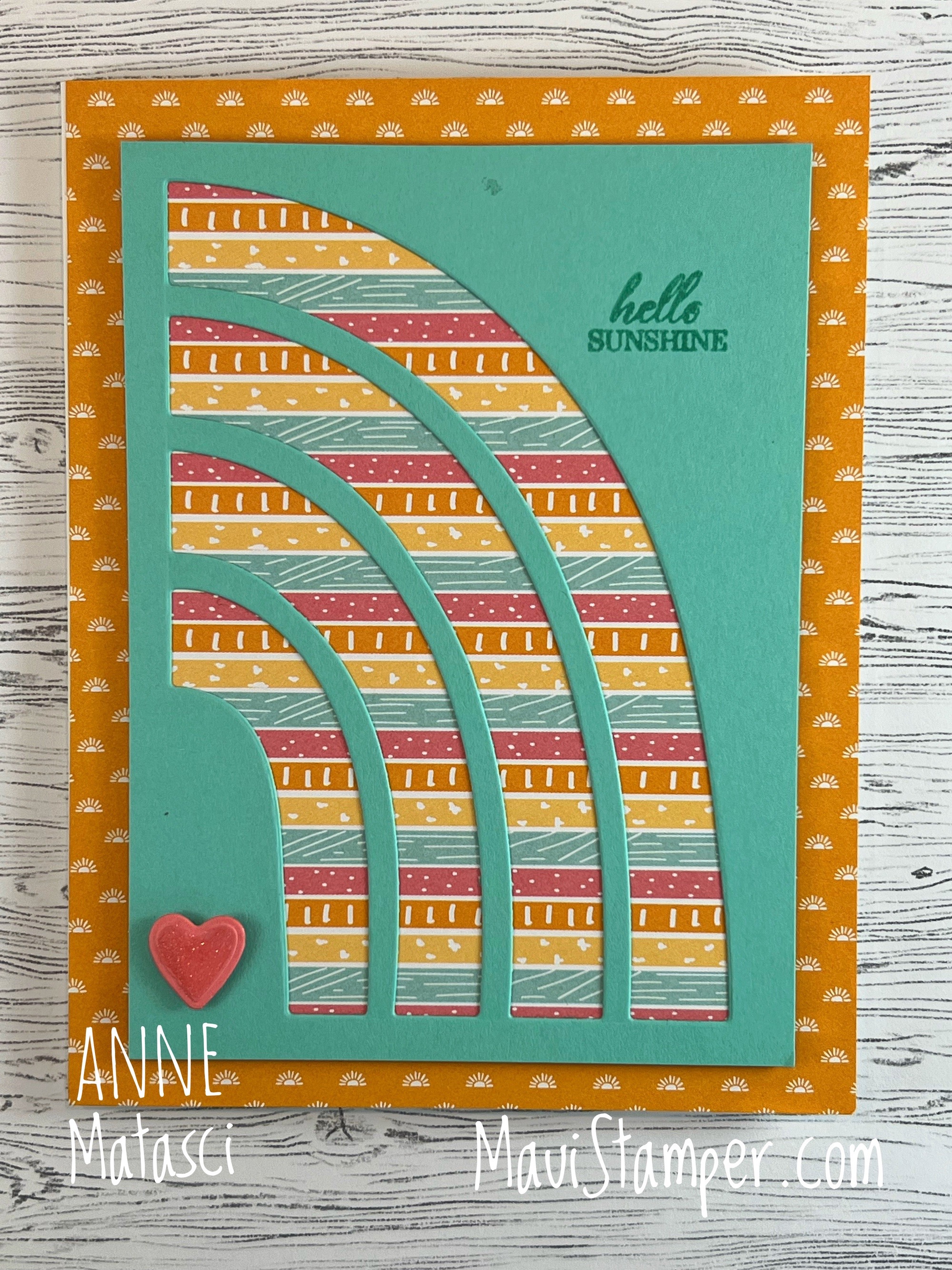 I had a set of negatives left when I finished my little rainbow notecards, and put them to good use with the coordinating paper from Sale-a-bration, Sunshine and Rainbows. I am so happy with the way Stampin’ Up! chooses to put a bold pattern on one side and a tone-on-tone pattern on the reverse of nearly every sheet of Designer Series Paper we offer. Have you shopped Sale-a-bration yet?