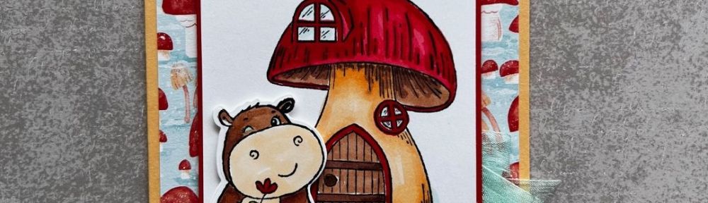 I experimented with a lot of Hippo colors, but ultimately decided that my card looked best if the Hippo shared the same colors as the wooden door on the mushroom. I used our new Naturals line of Stampin’ Blends to color them both.