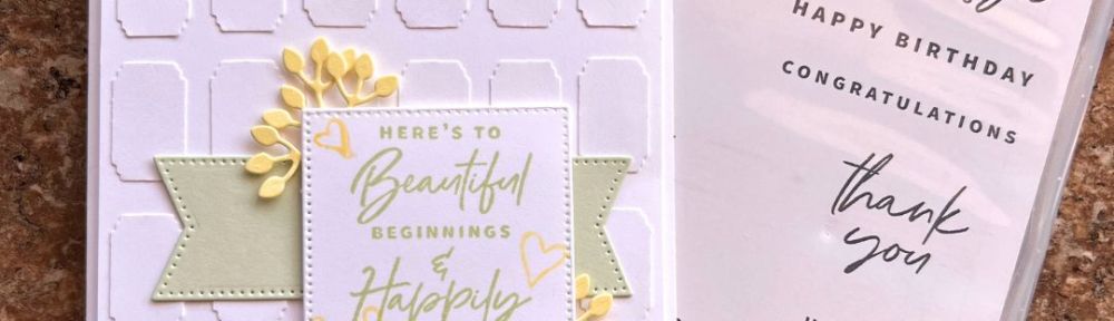The little hearts are from Country Bouquet. Since they’re open, they’re a light-touch accent to the sentiment. I thought about adding some Lemon Lolly Solid Gems but left them off in favor of the little floral clusters from the Textured Floral dies.