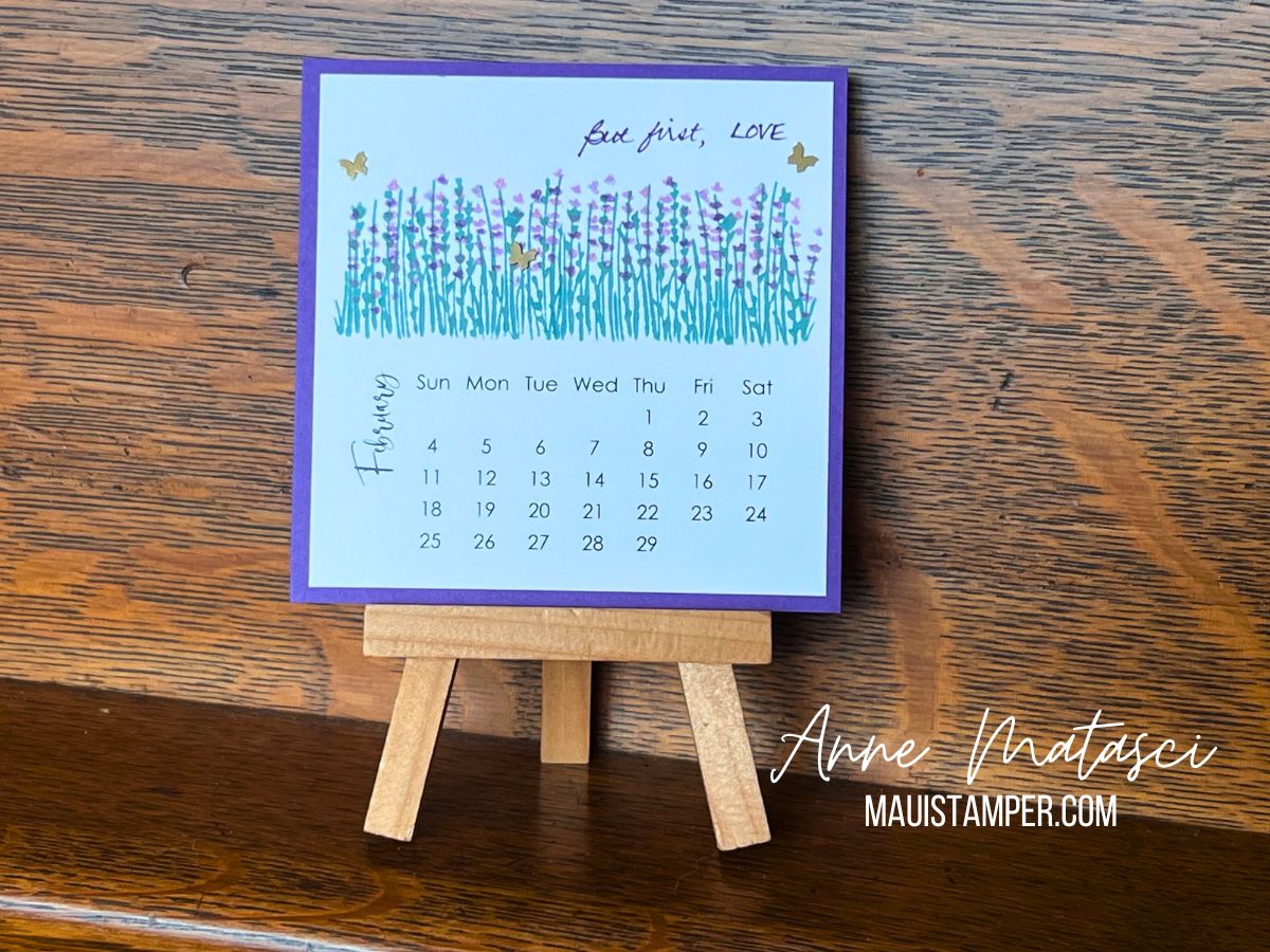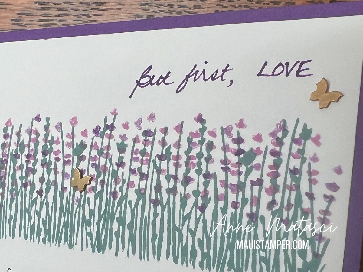 This “Lavender Fields” image from the Painted Lavender stamp set is easy to overlook, but it’s my favorite. There are lavender fields in Upcountry Maui, and they’re such a beautiful sight in bloom. Even though they won’t be in bloom til late summer, I chose them for this month.