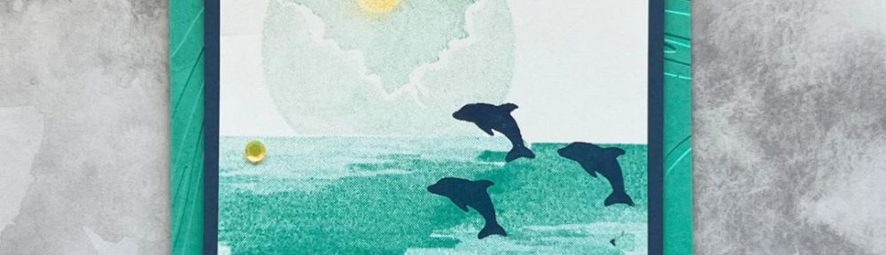 I stamped the “ocean” part 3 times – upside down, left and right – and added another layer on the inside of the card to carry the theme forward. Be sure to use a Stampin’ Pierce Mat or the Glass Mat Studio (now available!) with these photopolymer/distINKtive stamps for the best results. I tapped in the “sun” using a dauber and some Daffodil Delight ink.