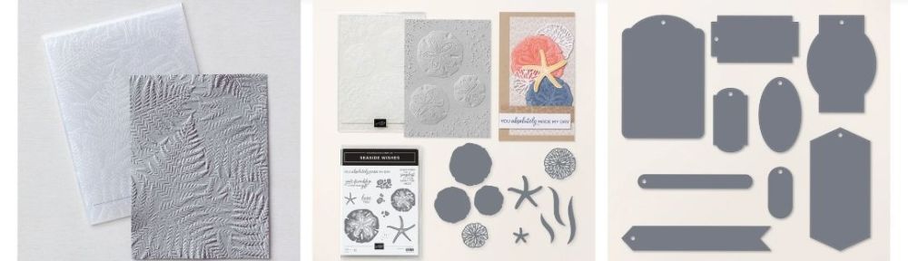 Seaside Wishes. I hoped we would have it one more year. This goes into my FOREVAH stash, especially with that hybrid embossing folder. Don’t wait, this one is already on low inventory.