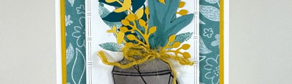That beautiful rectangular die is from Textured Notes – it’s fairly new, and it’s not Last Chance. I slipped in a little Wild Wheat Jute trim, and I think it works well with Daffodil and Lemon Lolly. I love the way Country Flowers and Textured Floral stamps and dies coordinate with each other! Both the stamps and dies for these two versatile sets are discounted.