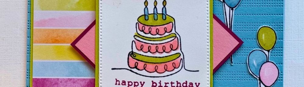 I confess, there’s a bit of work to fussy cutting the balloons, but straight lines and simple curves are actually pretty easy. The cake is quick to color, and everything else is just layers. I love complex cards, but simple ones surely have their place!