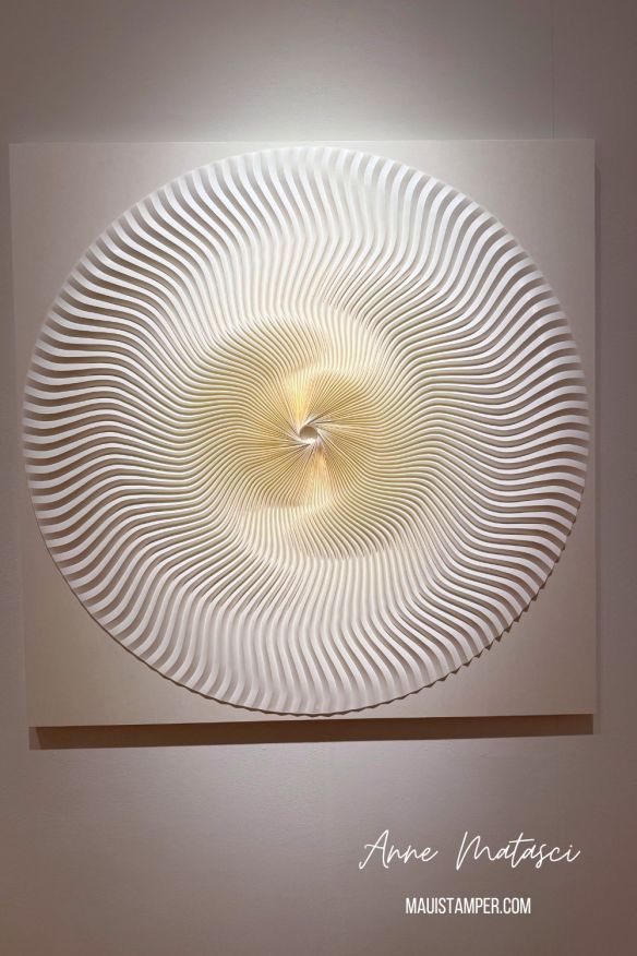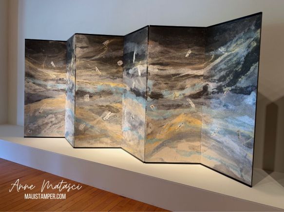 For my recent birthday, Mr. Maui Stamper took me to breakfast and then to an exhibit at the Schaefer Gallery at the Maui Arts and Cultural Center. It’s one of our favorite places to visit. The exhibitions are always extremely well curated, and the gallery is just the right size to explore without being overwhelmed. WASHI TRANSFORMED: NEW EXPRESSIONS IN JAPANESE PAPER took our breath away.
