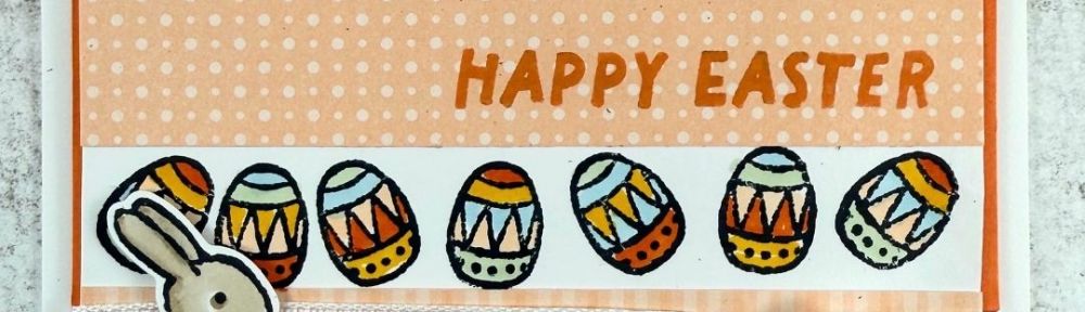 This little bun-bun has more eggs than she can manage, so she’s set them rolling across the front of my card – Easter is on the way!