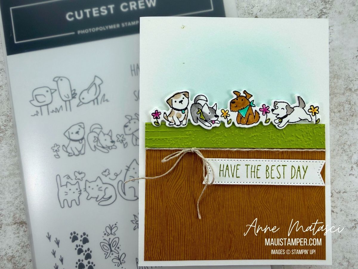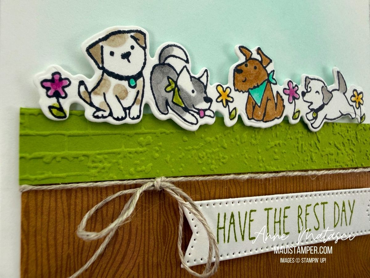 I think the puppies are the most fun to color, although the birdies are right behind them (and there are only 3 birdies so they go faster 😆). Stampin’ Blends make it quick and colorful work.