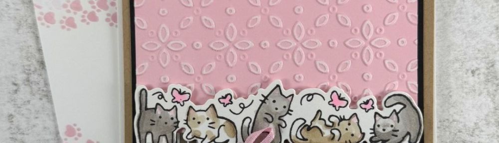 The kittens are a lot of fun to color with Stampin’ Blends. This little crew is an active bunch and they make for a very playful card!