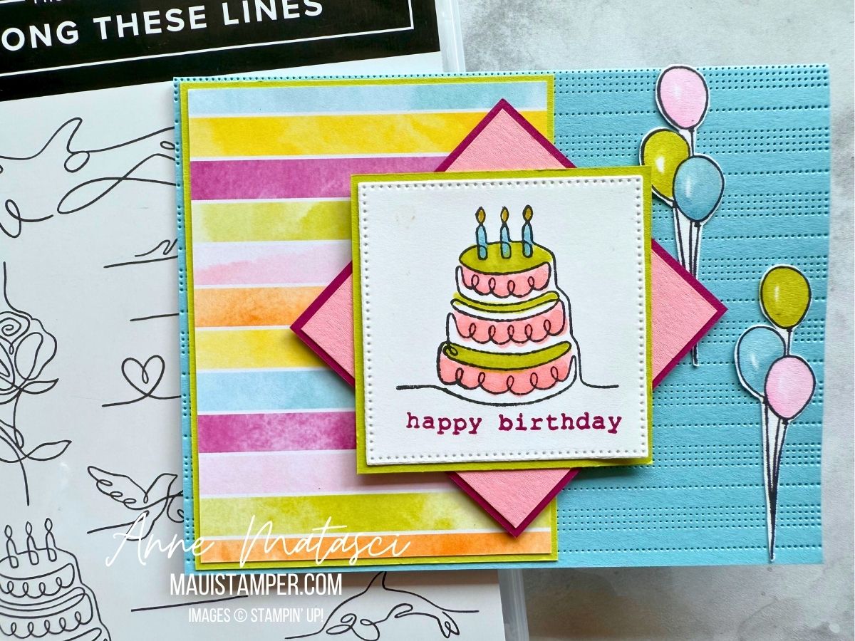 I confess, there’s a bit of work to fussy cutting the balloons, but straight lines and simple curves are actually pretty easy. The cake is quick to color, and everything else is just layers. I love complex cards, but simple ones surely have their place!