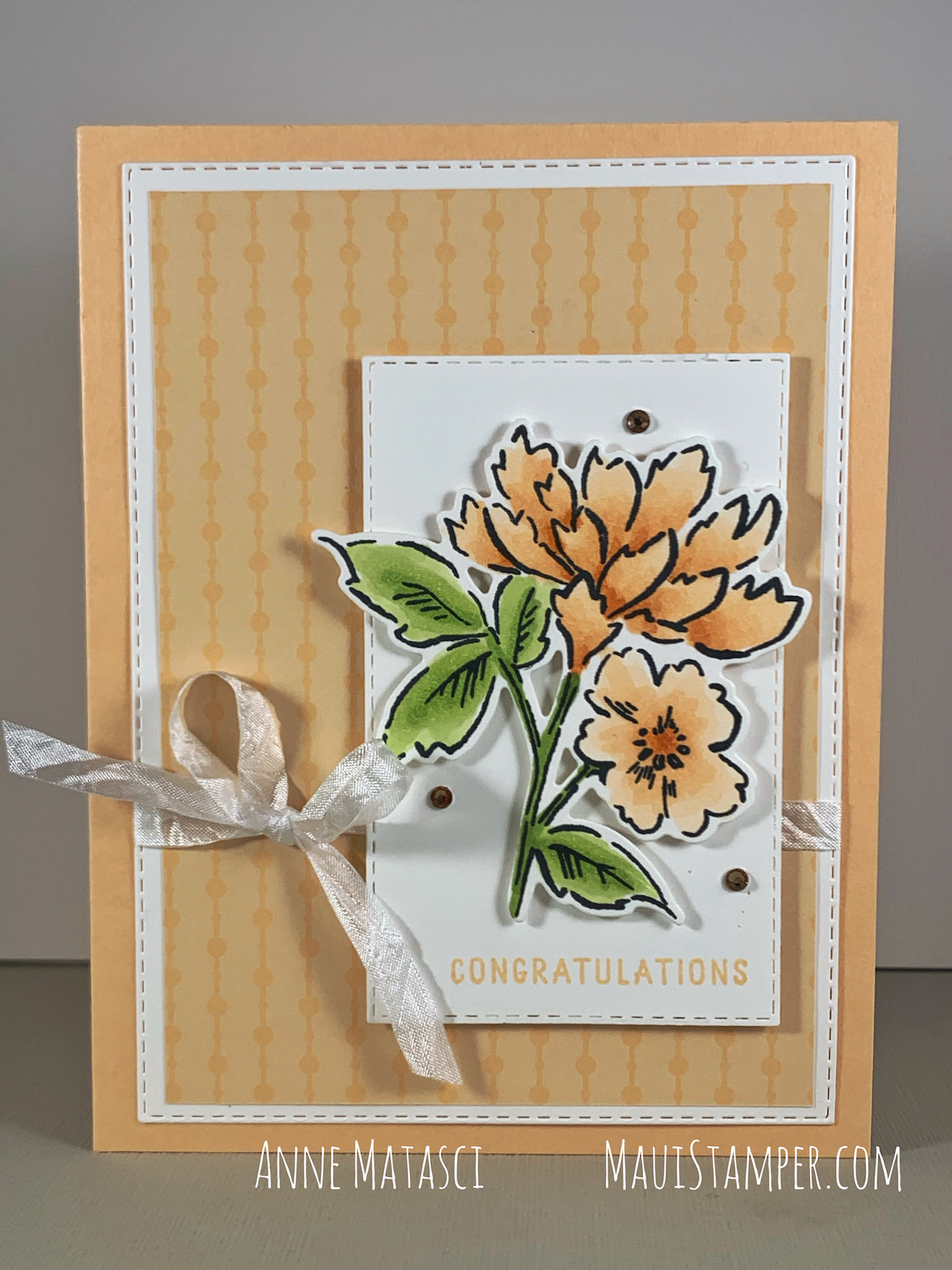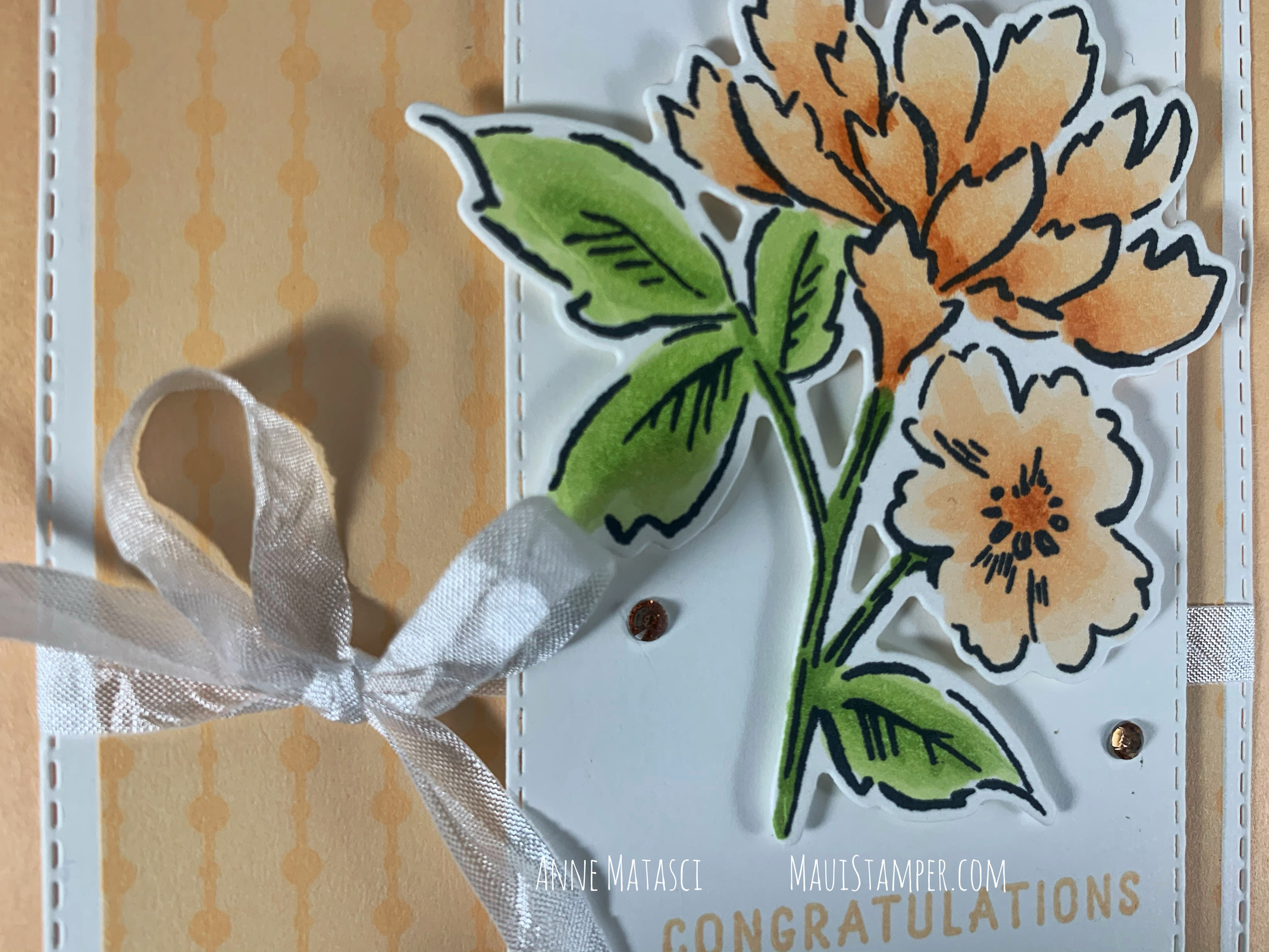 One of the best reasons I know for making a handmade card is to honor someone special. I was invited to a bridal shower last month that I couldn’t attend (something about 2,363 miles over the ocean). I really wanted to be there, so I sent my heart in a handmade card: