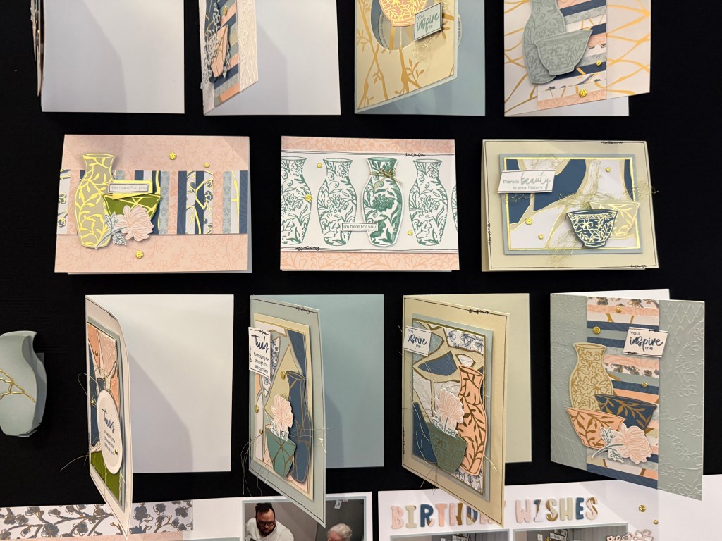 Switching out Mint Macaron for Emerald Envy creates a different feeling, and I added images from the Petite Petals and Birthday Blossoms stamp sets. None of these cards are especially complicated, and you could create a nice stash of cards in an afternoon using any of our Designer Series papers.