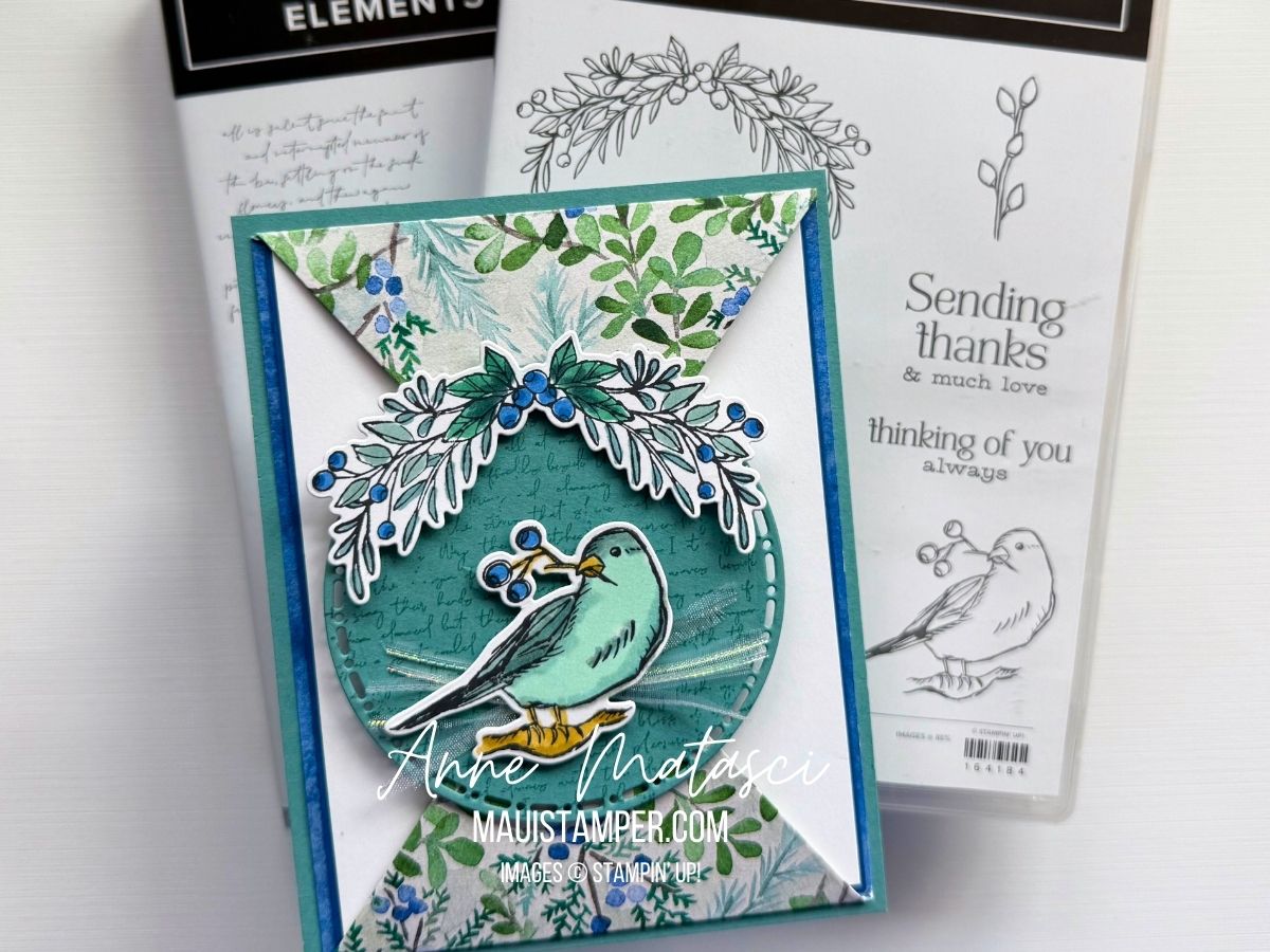 This is the same fun fold I did with the Painterly Pears a month ago, except I used a round focal point instead of a rectangular one. I have a stack of Deckle Circles left over in Basic White, and I decided they were going to speed things along for me with this project. Do you cut multiples of your favorite shapes? It’s such a time-saver.