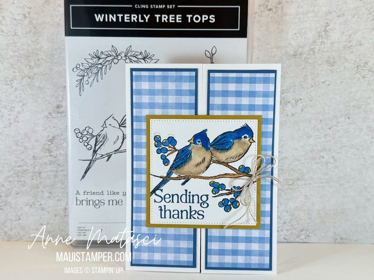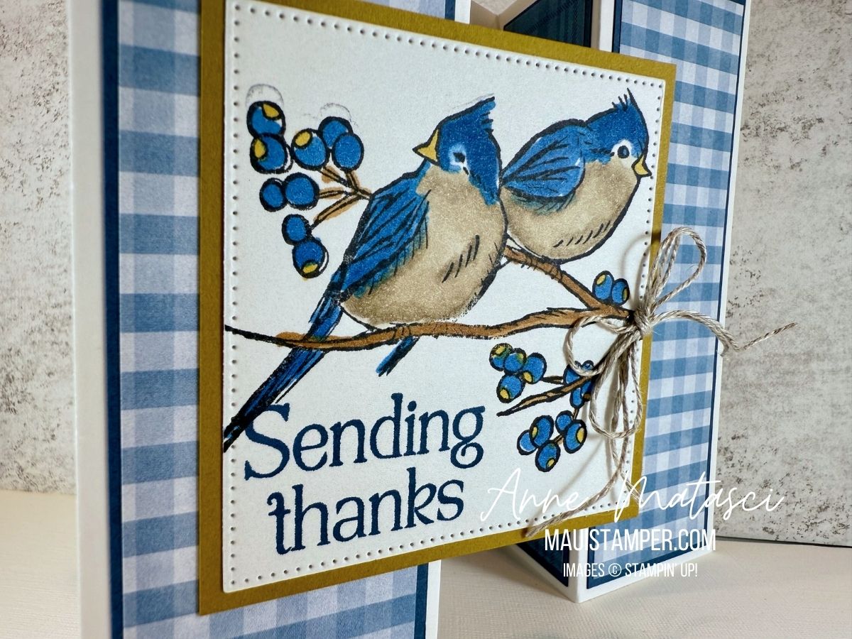 I pulled out the Perennial Lavender DSP and switched up the pattern layout. Not sure how I like the front with the deep Shaded Spruce panel, but I love the inside!