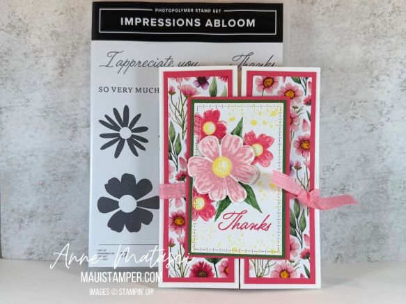 I’m still working on that DSP stash! This week it’s Florals in Bloom, paired with some Last Chance stamps and a fun fold from a few weeks back. I pulled out all the papers I’ve been hoarding from that package and went to work. Chop, Chop!!
