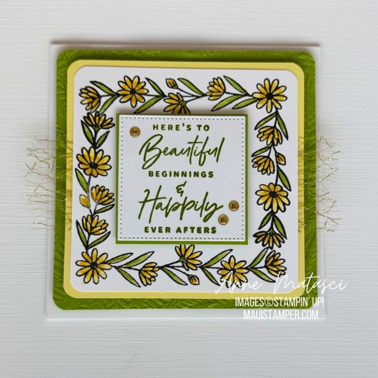 As much as these flowers needed Daffodil Delight, that color was too much as the mat behind the colored image. I chose Lemon Lolly instead, and it’s surprising how much difference a small adjustment like that makes.