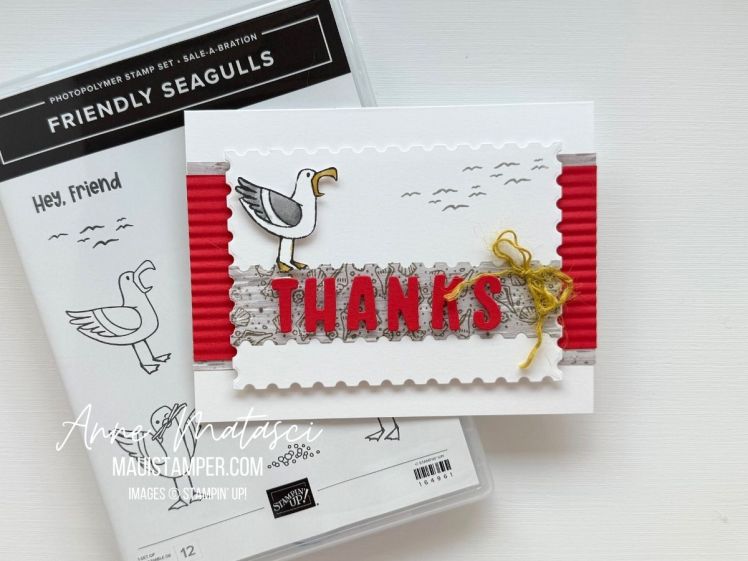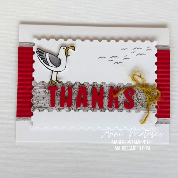 This card begs for a sassier, gull-like sentiment, but I couldn’t find anything in my stash. I’m going to hand letter one, but I’m open to suggestions. How would you caption this??