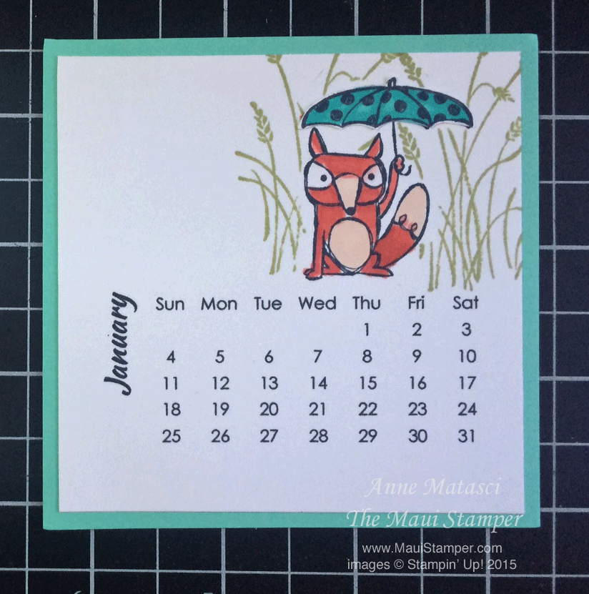 You’ll get 12 calendar month pages printed on Whisper White plus a cover page announcing the year. You will also receive 13 card stock mats in colors that will coordinate well with the seasons of the year. Finally, I’ll include a clear box tor presenting your calendar as a gift when you choose the kit with the easel. Contact me at AnneMatasci (at) gmail (dot) com with your choice of kits, email address, and shipping address. I’ll send an invoice via SQUARE and will ship the calendars on November 1, 2015. Full details HERE.