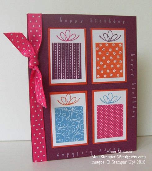 It’s a bittersweet time of year, but the longer I’m a demonstrator the more I come to look forward to the change. I do keep a few retired sets, but I find after a year or so I’m ready to let go of most of them. Some people enjoy going back to old favorites, but I guess I just have a short attention span. I love seeing new, fresh ideas! Check back early in the morning for a link to the new catalog, and sweet dreams.