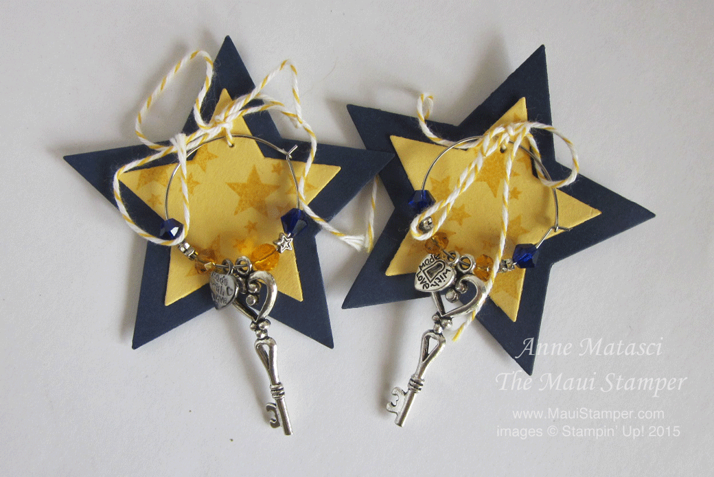 My niece was married in May, and I was delighted that she asked for my help with the favors for her wedding. Their theme was Starry Starry Night, and they carried it out beautifully. She had wine charms for her favors, and late one night we texted back and forth a dozen times until we came up with a plan: