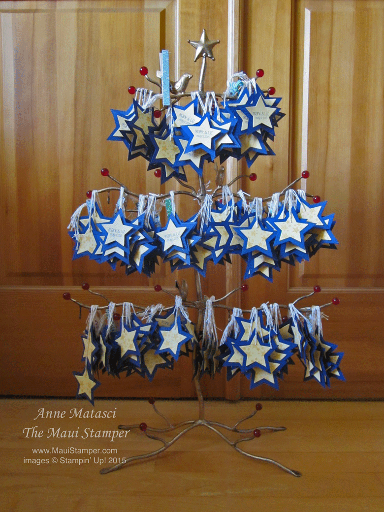 We used to carry a fabulous product called Champagne Mist Shimmer paint, and I have a stash of it that I keep for very special projects. Every star was sprayed front and back with Shimmer Spray, and it was a perfect finishing touch.
