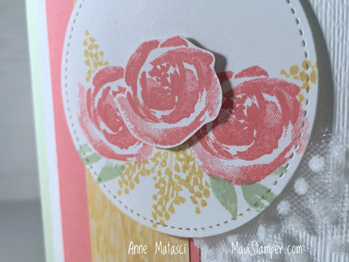 - Accessories: Big Boss (Stampin Cut & Emboss), Subtle Embossing Folder (RETIRING), Stitched Shapes dies (RETIRING), Polka Dot Tulle Ribbon (RETIRING), random bit of retired DSP (sorry!), Stampin’ Dimensionals, Paper Snips