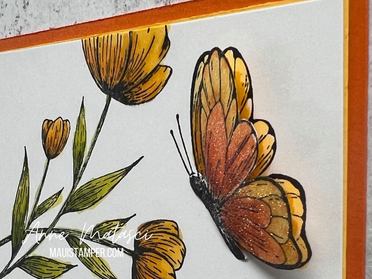 The wings are stamped and punched from the Nature’s Sweetness DSP to add a little sparkle. I also stamped off the Gray Granite ink when I added the honeycomb to the background. And I like to use glue dots to assemble the bee wings and antennas because they give me a little wiggle room to make adjustments in placement and angle.