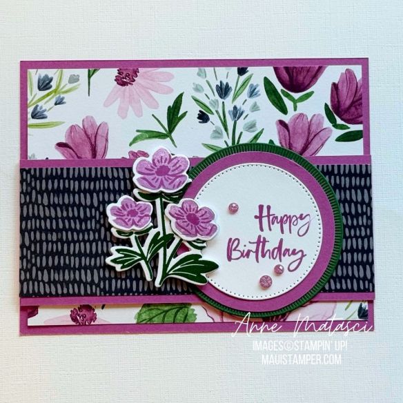 I’m still working on using my DSP, but I’ve moved into current releases. Floral Charm has beautiful saturated florals, with gorgeous tone-on-tone coordinating patterns on the reverse. It’s an effortless paper that makes card design such a joy.
