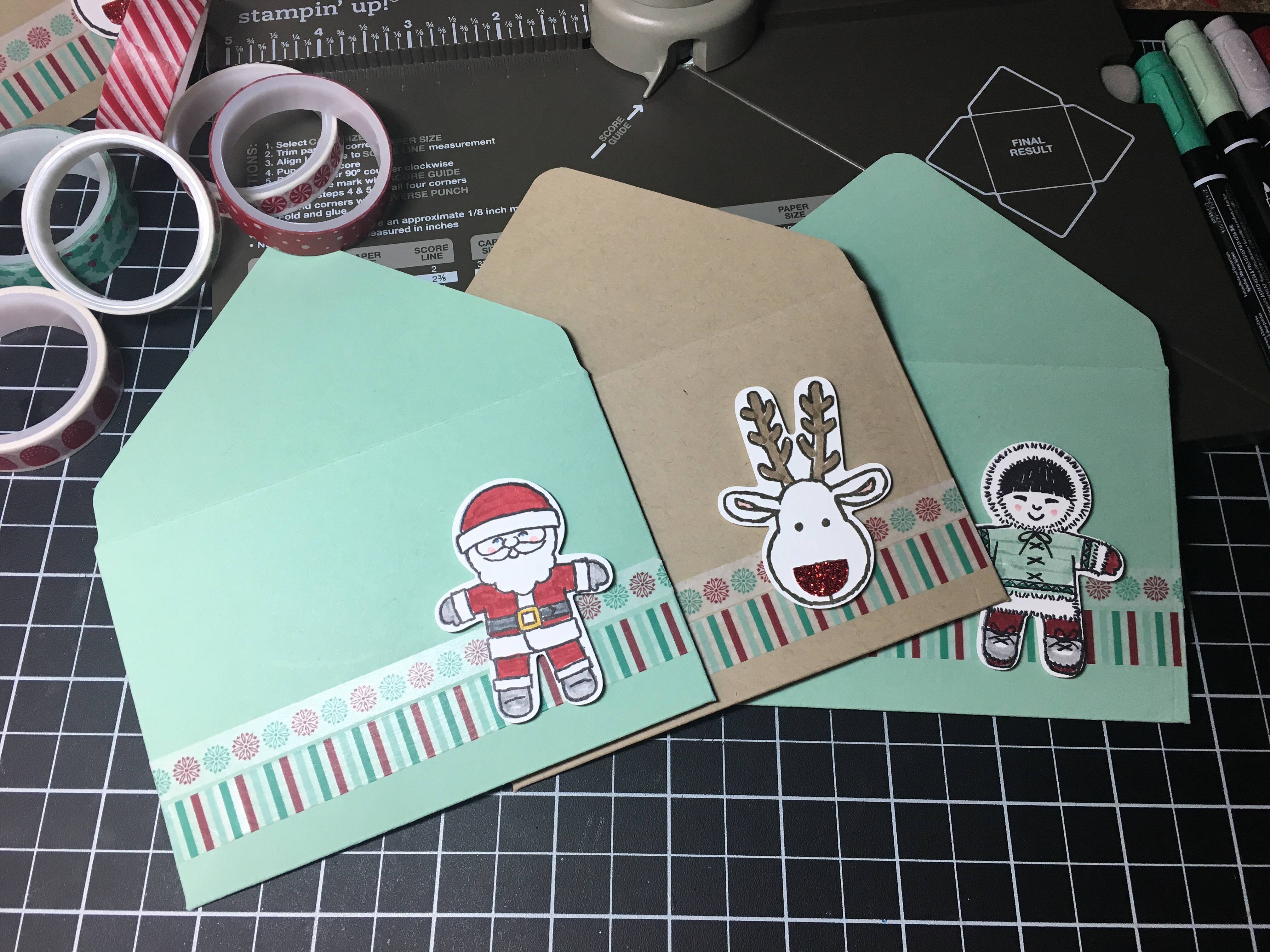 The little mummy is my all around favorite. Â I added the little heart (it’s one of the builder items on the punch) and colored a little Razzleberry face in there – how easy is that? Â There’s a little mummy brigade behind the tag punched directly onto the Kraft Tag a Bag gift bag.