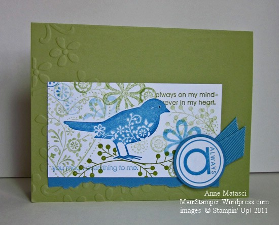 This is the Always stamp set in Pear Pizazz and Marina Mist.