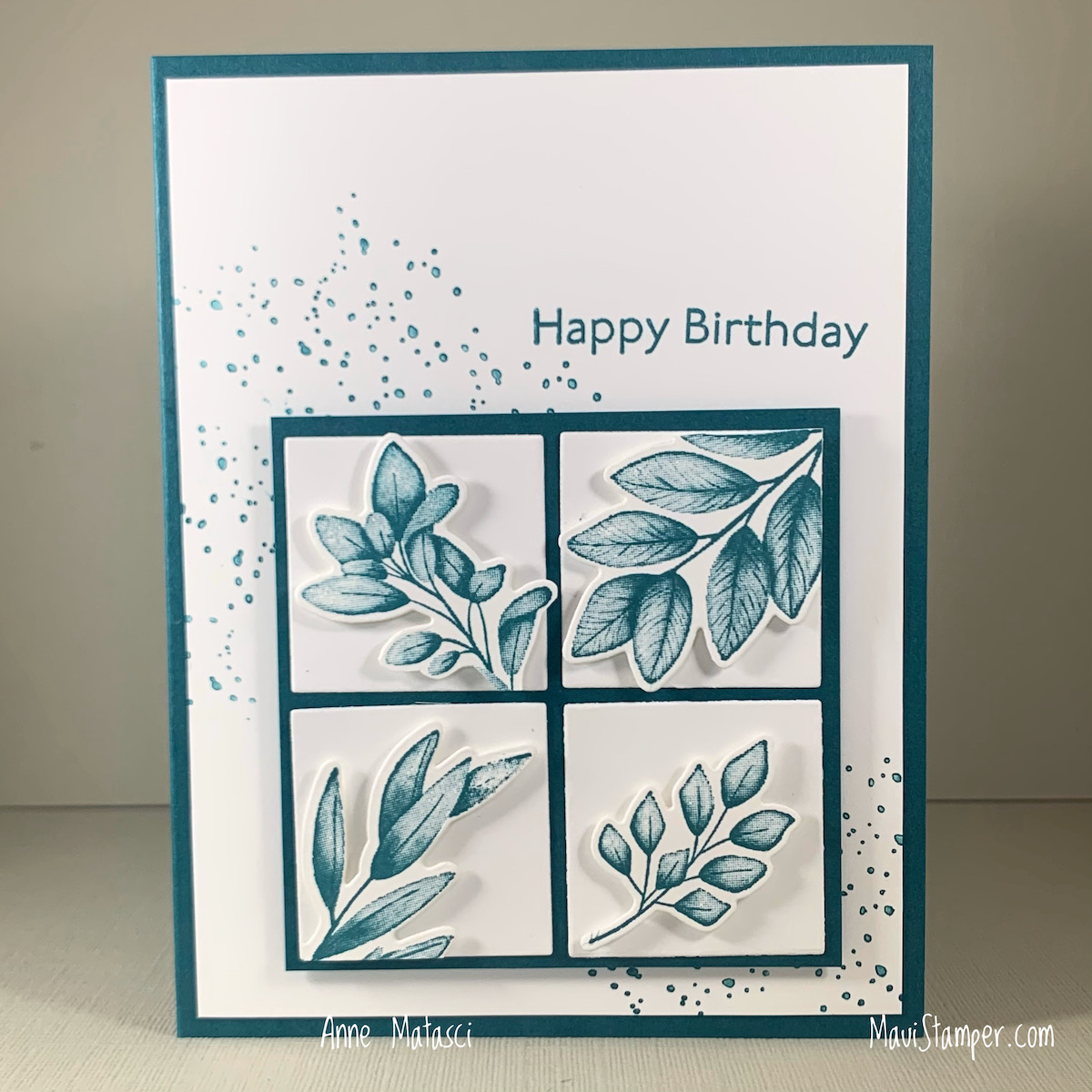 I did a second version with a different paper from the same Designer Series paper assortment. I kept it simpler with fewer layers and a little spritz created by flicking my markers. I love the dash of Night of Navy in this paper – it’s not 100% realism, but sometimes I need a break from reality.