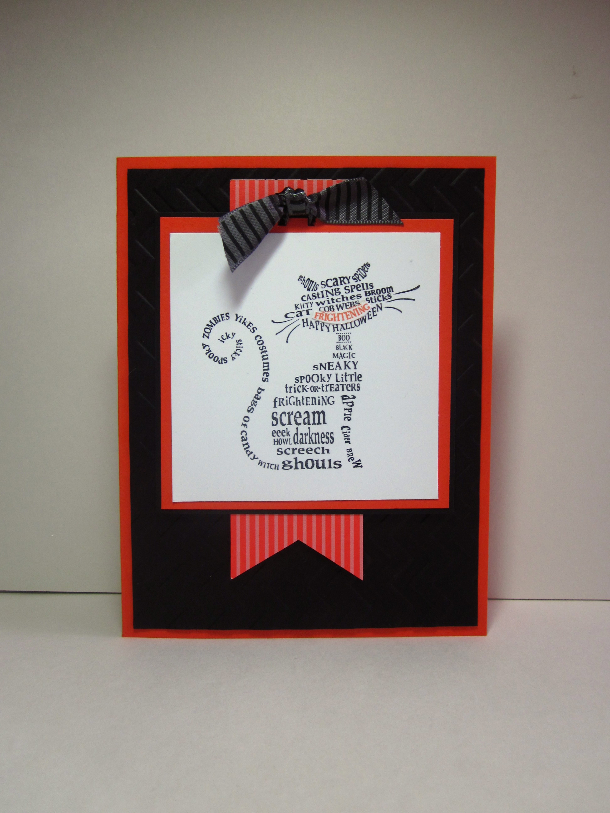 It’s getting late and oh, did I mention I’ve been having a DISCUSSION with Photoshop?? So I’m not going to post the full details, but if you really want them leave me a comment and I’ll fill in the blanks. This is the Petite Pocket die with the the fabulous Frightening Feline stamp (not at all frightening and only $.8.95!) embossed in Tangerine Tango.