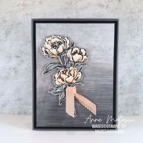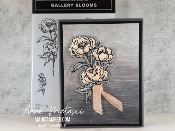 - Accessories: Stamp Cut & Emboss Machine, Gallery Blooms dies, Textured Notes dies, Delightful Wishes dies, Patterns of Friendship die, Perfectly Pears die, Linen Thread, Dauber, vellum, Stampin’ Dimensionals