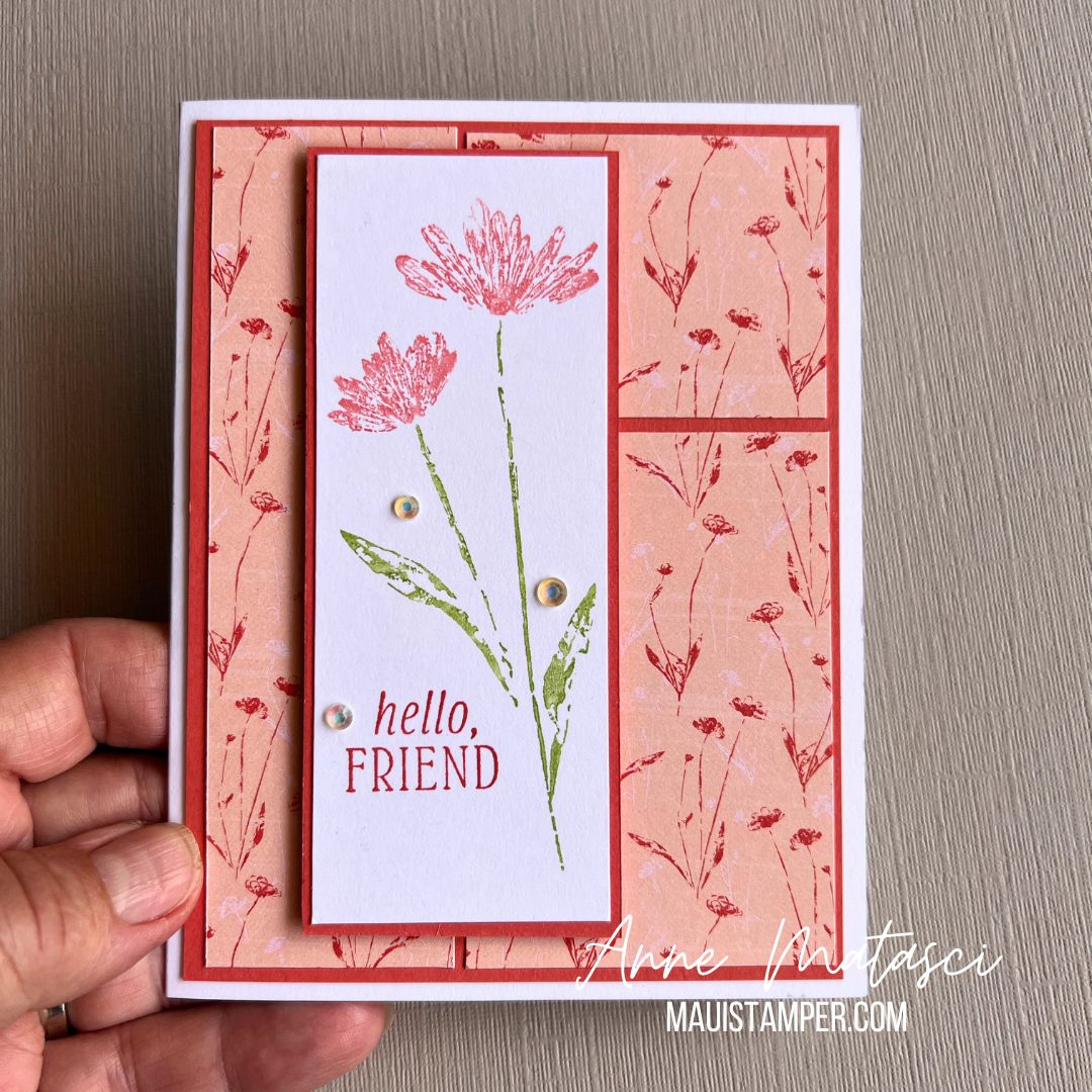 This is a simple card, but the Designer Series Paper (did I mention it’s on SALE???) makes a big difference. You could turn out a set of these with different papers in the blink of an eye! Shop the Online Store for the papers and inks you need.