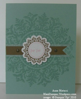 The “brad” in the center is nothing more than a circle of cardstock covered with Crystal Effects, and I left off that girly-frou-frou ribbon stuff.
