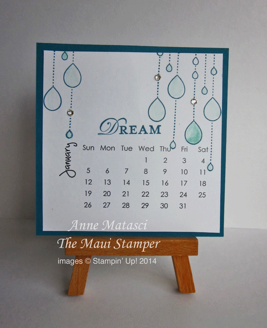 How better to start the year than with one of my favorite Stampin’ Up! color combinations – Pool Party and Island Indigo? We’ve actually had a bit of rain here on the dry side of the island, and it’s always a sign of blessing and a cause for celebration. These beautiful drops from the My Friend stamp set are just right to start the year, especially with some sparkle.  I’m big on dreams and goals, and appreciate a little reminder to keep it positive sitting on my desktop.