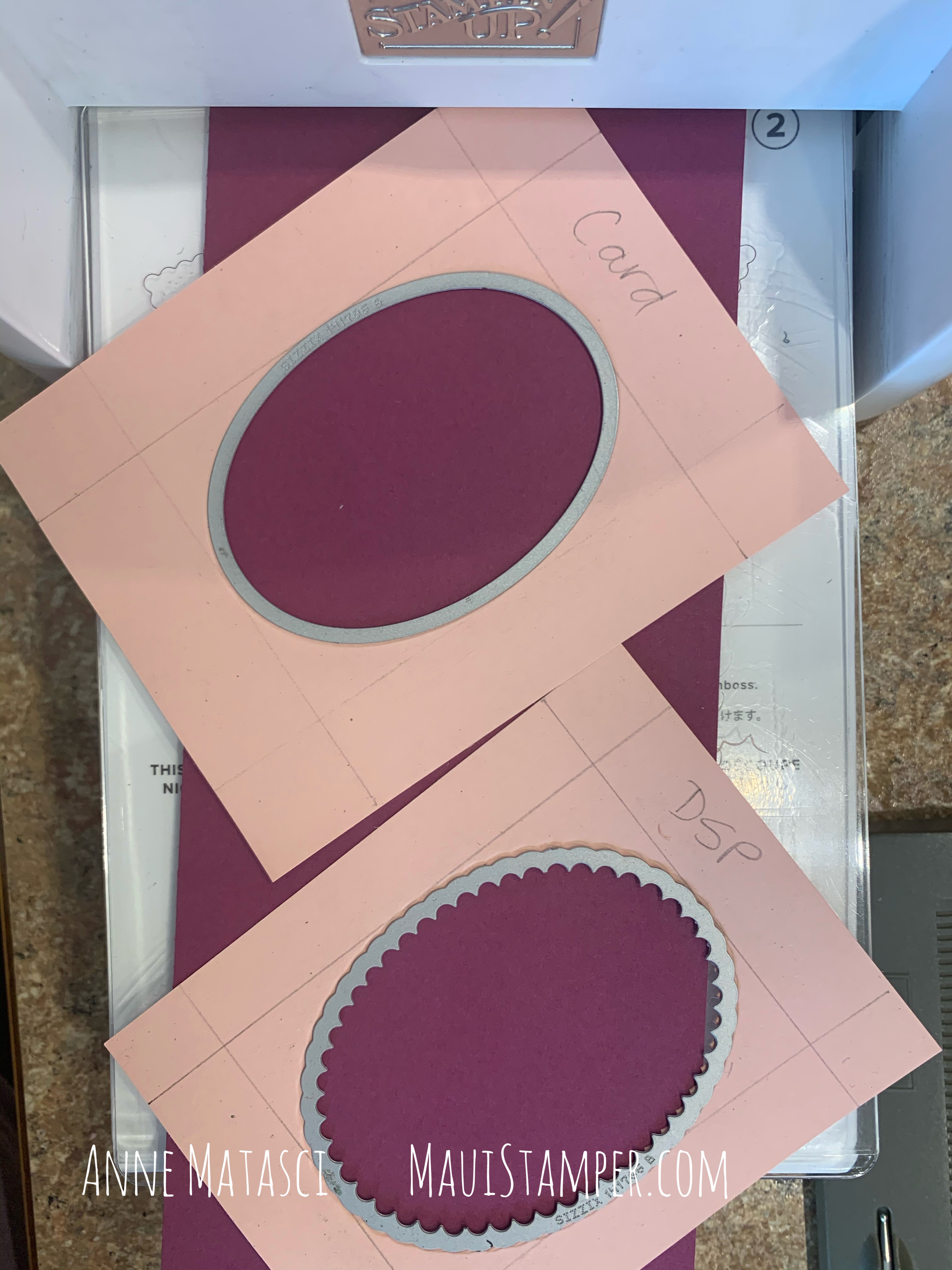 I prepared quite a few of these for a virtual stamping event, and I wanted to be sure I had the ovals in the center every time. To simplify that task, I made templates to use with the BIG BOSS: