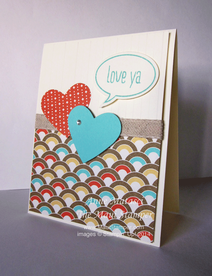 The message is loud and clear, don’t you think? And I had such fun embellishing each banner. I used a lot of Retro Fresh DSP, plus embossing folders, buttons, ribbon – if I could reach it I used it!