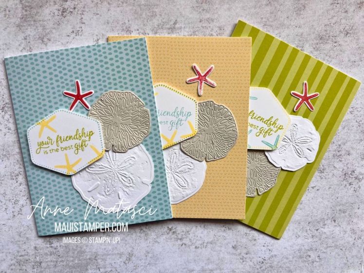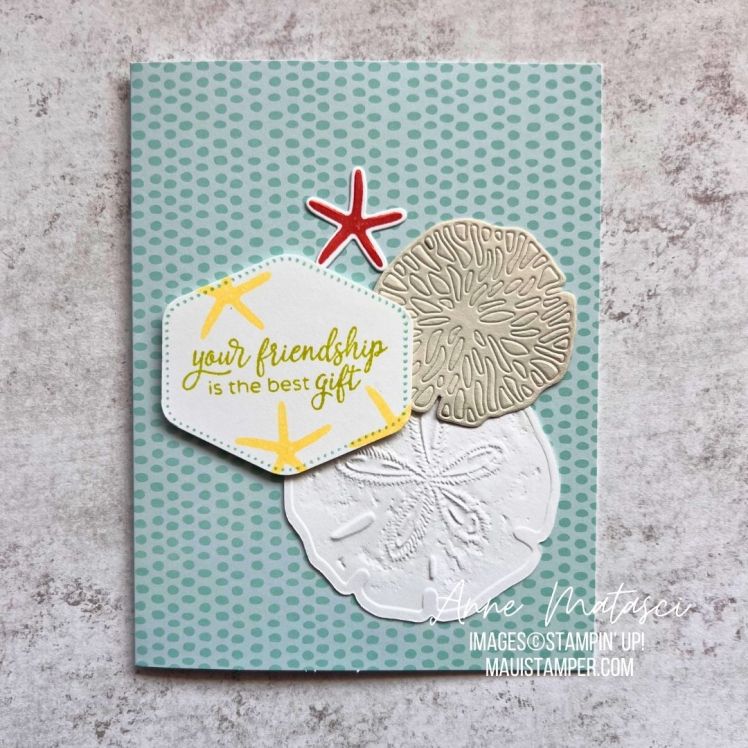 Seaside Wishes. I hoped we would have it one more year. This goes into my FOREVAH stash, especially with that hybrid embossing folder. Don’t wait, this one is already on low inventory.
