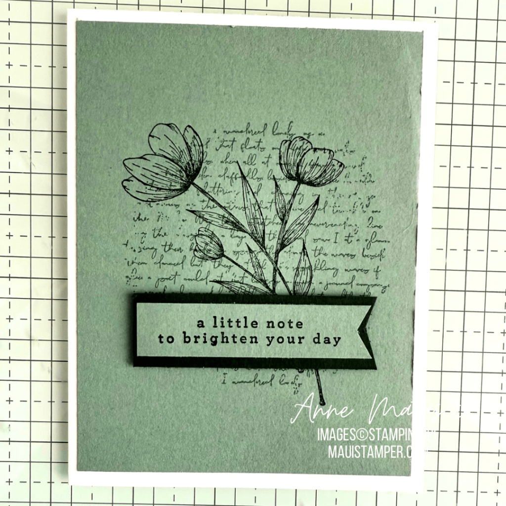 One of the Maui Stamper team members shared this technique with me, and I was smitten. It’s simple to do and I love the pop of color it gives on top of Crumb Cake card stock! Thanks, Brigid. 💕